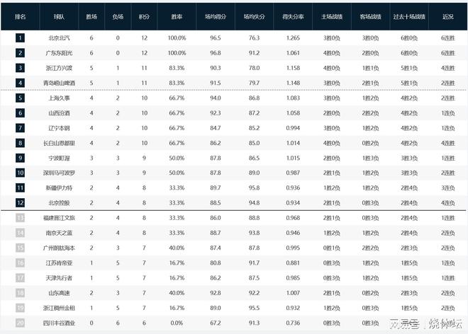 北京时间12月26日晚,2025/26赛季常规赛第6轮还有6场比赛。本轮最新一场比赛中,宁波、福建、广东、青岛主场获胜,天津、北京客场获胜。 CBA排行榜 宁波鼎沃 88-79 浙江稠州金租 上半场双方竞争非常激烈,来回陷入了长时间的胶着状态。半场结束,宁波男篮45-42稍稍领先。此后,第三节宁波男篮表现出色,但最后一节浙江男篮受到限制,未能扭转局面。至此,宁波男篮结束了2连败,取得了本赛季的第三场胜利。目前战绩提升至3胜3负,成绩还不错。浙江男篮又遭遇2连败。最新的战绩被改写为1胜5负。目前积7分排在第19位,非常低。福建晋江文旅97-84广州浪泰海本 福建男篮首节发挥出色,凭借快速攻势建立了11分的领先优势。第二节,广州男篮加强防守限制,追至45-49。此后,福建男篮在第三节再次占据优势,末节领先15分并顶住反击拿下比赛。至此,福建男篮结束三连败,并凭借赛季第二场胜利上升至第13位。总体情况有所改善。广州男篮遭遇2连败,目前落后1场。战绩为2胜3负,排名第15位,相当靠后。广东东阳光94-88山东高速广东男篮球员上半场表现出色,继续主导进攻。半场战罢,他们以61-46取得15分的优势。此后,山东男篮第三节强势反击,扳回比分。最后一节,广东男篮依然坚持了下来,有惊无险地拿下了比赛。至此,广东男篮取得6连胜,新赛季继续保持不败战绩,目前高居积分榜榜首。此役山东男篮遭遇两连败。目前战绩为2胜3负,少赛1场排名NASA第18位。南京天蓝76-104天津先锋 天津男篮此役迅速抓住机会,第二节取得13分领先,以49-41保持稳固的进攻优势。此后,天津男篮表现出色。下半场埃梅里发挥出色,扩大比分差距,成功拿下比赛。至此,天津男篮结束了5连败,最终赢得了本赛季的首场胜利。球队整体压力得到缓解。南京男篮已经遭遇2连败,本场比赛已经是一言难尽。目前战绩为2胜4负,跌至第14位。青岛崂山啤酒88-81山西汾酒青岛男篮首节领先6分。山西男篮第二节反超比分,以46-39反超比分。此后,青岛男篮在第三节以27-17领先对手,从而确立了比赛的胜利。到目前为止,青岛男篮已经取得了2连胜,整体战绩非常不错,5胜1负,依然排在积分榜第四位。山西男篮球队4连胜被终结,总成绩改写为4胜2负。强劲的上升势头被青岛队止住了。新疆伊力特85-89北京北汽新疆男篮统治首局比赛,凭借出色的表现取得8分领先。第二局,北京男篮反压制对手,以45-42领先。此后,双方比赛继续形成胶着状态,胜负悬在一线。北京男篮拿到主分。至此,北京男篮已经惊险取得6连胜,继续领跑积分榜对阵广东。这个赛季开局不错。新疆男篮最近遇到了麻烦。输掉这场比赛后,遭遇三连败,排名跌至连续第11位。